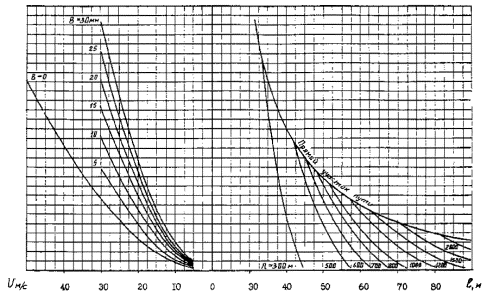 2.42. Нормативное и расчетное значения максимальной температуры воздуха следует принимать равными абсолютной максимальной температуре воздуха tmax с учетом воздействия солнечной радиации (прямой и рассеянной). Эквивалентное увеличение максимальной температуры воздуха в результате нагрева проводов солнечной радиацией определяют по выражению: tр = 0,0162jmax, где jmax - максимальное значение суммарной солнечной радиации в Вт/м2, принимаемое по табл. 5 СНиП 2.01.01-82 по строительной климатологии м геофизике. Для районов, расположенных между 46 и 56 градусами с. ш., температуру нагрева проводов солнечной радиацией tр можно принять равной 14 °С. 2.43. При определении длины анкерных участков цепных подвесок изменение температуры воздуха следует определять как среднее между среднегодовым и нормативным значениями. 2.44. Температуру беспровесного положения контактного провода следует определять по выражению: tо = где Более точно температуру беспровесного положения контактного провода можно определить, исходя из следующих соотношений: если значения если Здесь tн - средняя нормативная температура воздуха.