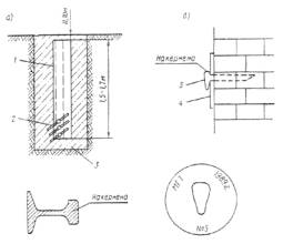 измерениями одной и той же линии не должны превышать 3.15. При обработке результатов линейных измерений в измеренные расстояния должны быть введены поправки за наклон линии, а также за температуру и давление воздуха, которые следует измерять в начале, середине и конце каждого рабочего дня. 3.16. Измерения в ходах привязки к пунктам государственной геодезической сети должны выполняться так же, как и при прокладке магистральных ходов. Для угловой привязки на пунктах государственной геодезической сети необходимо измерять два примычных угла на геодезические знаки, дирекционные углы направлений на которые известны, или на ориентирные пункты. Разность измеренных примычных углов на исходные пункты не должна отличаться от разности исходных дирекционных углов больше чем на 30². 3.17. Пункты (точки) магистральных ходов при инженерно-геодезических изысканиях новых железных и автомобильных дорог закрепляются на местности временными знаками - деревянными кольями диаметром около 10 см или столбами, в которые вбиты гвозди, фиксирующие центр знака. При работах в залесенной и таежной местностях в качестве знаков могут быть использованы пни спиленных деревьев диаметром не менее 20 см. 3.18. Пункты (точки) ходов съемочной геодезической сети при инженерно-геодезических изысканиях для проектирования вторых путей и расширения (реконструкции) железнодорожных станций закрепляют, как правило, металлическими стержнями или трубками диаметром 20-25 мм и длиной не менее 50 см, забиваемыми вровень с землей. Центр точки фиксируется керном или крестообразной насечкой на торце стержня или пробки, забитой в верхний конец трубы. 3.19. При съемке железнодорожных станций постоянными знаками (рекомендуемое приложение 1) должны быть закреплены не менее 3 точек базисного хода на каждый парк и не менее 2 точек на 1 км главного пути. Положение постоянных знаков выбирают так, чтобы обеспечить их сохранность при реконструкции станции, а при их закладке не были повреждены подземные коммуникации. На каждый постоянный знак должен быть составлен абрис с указанием не менее трех расстояний до ближайших сооружений или устройств, которые легко могут быть опознаны. Все постоянные знаки геодезической основы станции должны быть переданы по акту на хранение дистанции пути. Нивелирование3.20. Отметки точек магистральных, базисных и съемочных ходов, опознаков планово-высотного обоснования аэрофотосъемки и головки рельса существующих железных дорог допускается определять методами геометрического или тригонометрического нивелирования. Выбор метода нивелирования определяется имеющимся парком геодезических приборов и условиями производства работ. Тригонометрическое нивелирование следует применять, как правило, при производстве работ с использованием светодальномеров или электронных и электрооптических тахеометров. 3.21. Геометрическое нивелирование надлежит выполнять, как правило, путем прокладки по точкам съемочного обоснования ходов технического нивелирования, которые привязывают к пунктам государственной геодезической сети, маркам и реперам нивелирной сети и к временным реперам. Для составления продольного профиля существующего железнодорожного пути нужно нивелировать: на прямых участках головки одного (правого или левого) рельса, на кривых - внутреннего рельса. 