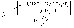 где b - число подобия режимов течения воды; Кэ - коэффициент эквивалентной шероховатости, м; Reф - число Рейнольдса фактическое. Приведенный (внутренний) диаметр dр следует определять по формуле dp = 0,5(2dн + Ddн - 4S - 2DS), (4) где dн - наружный диаметр трубы, м; Ddн - допуск на наружный диаметр трубы, м; S - толщина стенки трубы, м; DS - допуск на толщину стенки трубы, м. Фактическое число Рейнольдса Reф определяется по формуле