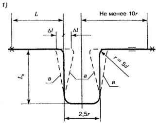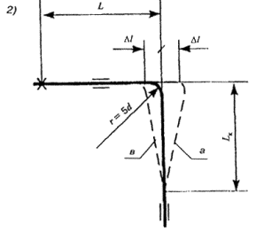 КОМПЕНСАЦИЯ ТЕМПЕРАТУРНЫХ УДЛИНЕНИЙ 3.22 Компенсация температурных удлинений может быть осуществлена за счет самокомпенсации участков трубопровода, установкой компенсаторов и правильной расстановкой неподвижных и скользящих опор. В качестве компенсаторов предпочтительно использовать углы поворотов трубопроводов. На прямых участках трубопровода необходимо предусматривать П-образные, Г-образные, петлевые и другие компенсаторы, расстояния между которыми определяются расчетом. В качестве неподвижных опор могут быть использованы держатели для труб, закрепленные на строительных конструкциях, или укрепленные в них кронштейны. 3.23 Удлинение отрезка трубопровода при изменении температуры теплоносителя и окружающей среды (рисунок 10) определяется по формуле Dl = 0,025LDt, (10) где Dl - изменение длины трубы, мм; L - длина участка трубопровода при температуре монтажа, м; Dt - перепад температур между температурой воздуха в помещении при монтаже и эксплуатации, °С; 0,025 - коэффициент линейного расширения трубы, мм/м. 3.24 Расчет компенсирующей способности П-образных компенсаторов и Г-образных элементов трубопровода производится по формуле (рисунок 11)