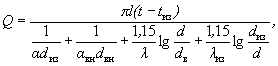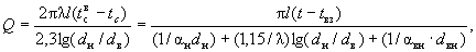 где tвз - температура воздушной среды, °С; aн - коэффициент наружной теплоотдачи, Вт/м2 × К. Выпадения конденсата не будет при условии tc > tр. 3.26 При использовании теплоизоляции тепловой поток теплоизолированной трубы приближенно может быть определен по следующей зависимости