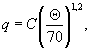 где dиз - наружный диаметр изоляции, м; lиз - коэффициент теплопроводности изоляции, Вт/м × К. Это соотношение справедливо при условии идеального контакта наружной поверхности трубы с изоляцией. При накладной изоляции обычно условие не соблюдается и воздушная прослойка играет роль дополнительного слоя. 3.27 По данным НИИсантехники в таблицах 4 и 5 представлены результаты тепловых испытаний металлополимерных труб в виде зависимости линейной плотности теплового потока q, Вт/м, от температурного напора Θ, °С, при горизонтальном расположении открыто проложенных труб на высоте 100 мм от пола и вертикальном расположении труб. В среднем тепловой поток q, Вт/м, зависит от фактического температурного напора Θ, °С, в степени 1,2, т.е.