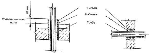 3.33 При скрытой прокладке одиночных труб, замоноличенных в легком бетоне с пластификатором, расчетный тепловой поток увеличивается в 1,1 - 1,15 раза. 3.34 При прокладке труб в стандартных штробах, полностью заполненных самотвердеющей пенистой изоляцией, тепловой поток труб снижается в случае размещения в наружных стенах на 15 - 20 %, во внутренних перегородках - на 5 - 10 %. 4 ТРАНСПОРТИРОВАНИЕ И ХРАНЕНИЕ МЕТАЛЛОПОЛИМЕРНЫХ ТРУБ4.1 Перевозка, погрузка и разгрузка металлополимерных труб должны осуществляться при температуре наружного воздуха не ниже минус 20 °С. 4.2 Перевозка металлополимерных труб может быть осуществлена любым видом транспорта (желательно в крытых автомашинах и вагонах) в отрезках или бухтах, в горизонтальном положении. 4.3 При погрузочно-разгрузочных работах, транспортировании и хранении металлополимерные трубы необходимо оберегать от механических повреждений. Запрещается сбрасывать трубы с транспортных средств или волочить по любой поверхности. Во время погрузки следует применять стропы из мягкого материала. 4.4 Хранить металлополимерные трубы необходимо в закрытом помещении или под навесом в горизонтальном положении, на ровном полу, настиле, щитах, оберегая от прямых солнечных лучей. Высота штабеля не должна превышать 2,0 м. При хранении труб в складских помещениях температура окружающего воздуха не должна превышать 50 °С, а расстояние от нагревательных приборов должно быть не менее 1,0 м. 5 МОНТАЖ СИСТЕМ ОТОПЛЕНИЯ ИЗ МЕТАЛЛОПОЛИМЕРНЫХ ТРУБОБЩИЕ УКАЗАНИЯ 5.1 Монтаж металлополимерных труб должен осуществляться по монтажному проекту при температуре окружающей среды не ниже 10 °С. 5.2 Перед прокладкой металлополимерных труб в помещении необходимо закончить все электрогазосварочные работы, установить элементы крепления, а при открытой прокладке - закончить отделочные работы. При скрытой прокладке трубопроводов в местах расположения разборных соединений и арматуры следует предусматривать люки или съемные щиты, не имеющие острых выступов. Стояки целесообразно размещать в каналах, нишах, бороздах, за декоративными панелями или, как исключение, замоноличивать их в стенах и перегородках. Горизонтальные трубопроводы и подводки к отопительным приборам допускается размещать по перекрытиям и за плинтусами (рисунок 14). Открытые участки можно закрывать декоративными элементами. а - в отапливаемых помещениях на междуэтажных перекрытиях между квартирами; б - в отапливаемых помещениях на перекрытиях над неотапливаемыми помещениями или в подвале; 1 - покрытие пола; 2 - слой бетона; 3 - слой гидроизоляции; 4 - слой звукоизоляции; 5 - слой теплоизоляции; 6 - трубопровод; 7 - засыпка; 8 - перекрытие; 9 - теплоизоляция трубы Рисунок 14 - Скрытая прокладка разводящих трубопроводов из металлополимерных труб в полу Открытая прокладка металлополимерных труб допускается в местах, исключающих их механическое и термическое повреждение и прямое воздействие ультрафиолетового излучения. 5.3 Не допускаются сплющивания и переломы трубопровода во время монтажа. При изломе трубу следует выпрямить и придать ей цилиндрическую форму деревянным или резиновым молотком. Такую операцию допускается осуществлять только один раз на данном участке. 5.4 Бухты металлополимерных труб, хранившиеся или транспортировавшиеся на монтаж (заготовительный участок) при те
