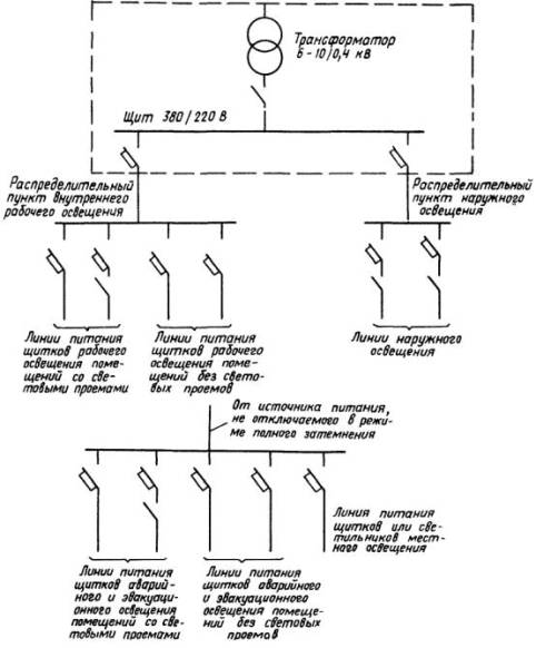 Электрический способ световой маскировки заключается в централизованном отключении электроосвещения всего объекта или его части.