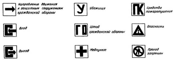 Для указания входа, выхода и других обозначений применяется световой знак для помещений с лампой накаливания (ТУ ФХСХ-04-81).
