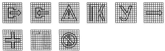 Вид световых знаков приведен на рис. 1, начертание их символов в модульной сетке - на рис. 2.