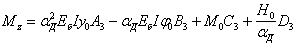 где К-коэффициент пропорциональности, тс/м4, принимаемый в зависимости от вида грунта, расположенного под подошвой набивной сваи, сваи-оболочки или сваи-столба, согласно п. 2 приложения к указанной главе СНиП; l1-фактическая глубина погружения сваи в грунт, м, отсчитываемая и при высоком, и при низком ростверке от поверхности грунта; dп-диаметр подошвы набивной сваи, сваи-оболочки или сваи-столба, м, принимаемый равным диаметру их ствола, а при наличии уширенной пяты - наибольшему диаметру уширения. 8. Характеристики жесткости сваи r2, r3 и r4 (см. п. 6 настоящего приложения) определяются по формулам: где d1 и d3-горизонтальное смещение и угол поворота сечения сваи (со свободным верхним концом) в уровне подошвы-ростверка от горизонтальной силы Н=1, приложенной в том же уровне (рис. 3,а); d3 и d2-то же, от момента М=1 (рис. 3,б).