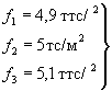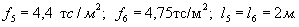 f1=1,5 тс/м2; f2=1,8 тс/м2; f3=3,74 тс/м2; f4=4,02 тс/м2; f5=1,8 тс/м2; f6=1,8 тс/м2; f7=4,64 тс/м2; f8=4,835 тс/м2;