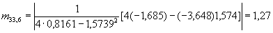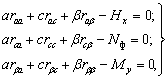 По формулам (5) и (4) определяем коэффициенты канонических уравнений, учитывая, что k1=k6=3; k2=k5=2; k3=k4=5; x1=x2=-2,25 м; x3=-0,75 м; x4=0,75 м; x5=x6=2,25 м; j1 =-14° (sinj1 =-0,242; cosj1=0,97); j2=j3=j4=j5=0; j6 =-14° (sinj6=0,242; cosj6=0,97); ro=3,64×104-0,1169×103=3,63×104 тс/м; raa=3,63×104×3×0,2422×2 + 20×0,1169×103=1,51×104 тс/м; rab=3,63×104×3×2,25×1,242×0,97×2- - 0,3901×103(3×0,97×2 + 14×1)=10,73×104 тс; rcc=3,63×104×(3×0,972×2 + 14×12) +20×0,1169×103=71,56×104 тс/м; rbb=3,63×104×(3×2,252×0,972 + 2×2,252×12 + 5×0,752×12)×2 + + 0,1169×103(2,252 + 0,752)5×2 + 2×0,3901×103×3×2,25×0,242×2 + + 20×1,779×103=202,3×104 тс×м; Так как плоская расчётная схема фундамента имеет ось симметрии, то перемещения ростверка определяем, пользуясь формулами (3) и (2):