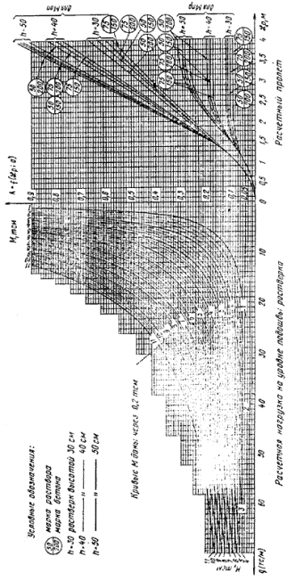 промежуточных значений высоты ростверка, нагрузки марки растворного шва и при