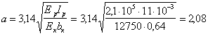 Модуль упругости кирпичной кладки принимаем Ек=12750 кгс/см2. По формуле (2) вычисляем длину полуоснования эпюры нагрузки: