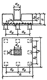 Рис. 6. Схема свайного ростверка В зависимости от ширины ростверка и ширины цоколя графики следует принимать согласно табл. 2. Таблица 2