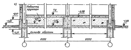 наличии в основании забивных и набивных свай, свай-оболочек и свай-столбов