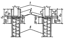 где М-изгибающий момент на уровне верха стакана, тc×м; N-продольная сила, тc; Q-поперечная сила на уровне верха стакана, тc; dк-сторона поперечного сечения колонны, м; уп-глубина стакана, м. Определенный по формуле (4) момент Мк принимается не менее величины Мк1, определенной по формуле (3). ПРИЛОЖЕНИЕ 12ОСОБЕННОСТИ ПРОЕКТИРОВАНИЯ БЕЗРОСТВЕРКОВЫХ СВАЙНЫХ ФУНДАМЕНТОВ КРУПНОПАНЕЛЬНЫХ ЖИЛЫХ ДОМОВ 1. Безростверковые свайные фундаменты могут применяться для крупнопанельных домов высотой до 12 этажей (включительно) с несущими поперечными стенами, с шагом до 6 м, плиты перекрытий в которых, как правило, имеют размер на комнату в случаях, когда: сваи расположены под панельными стенами в один ряд. стеновая панель или часть ее до проема опирается не менее чем на две сваи; максимальное расстояние между сваями под поперечными стенами не превышает 2,2 м (при использовании типовых панелей без дополнительного армирования это расстояние определяется расчетом). 2. Устройство безростверковых свайных фундаментов при опирании свай на крупнообломочные и скальные грунты, в сейсмических районах, на просадочных, набухающих и заторфованных грунтах, а также на подрабатываемых территориях и при наличии карстов не допускается. 3. Каждая панель несущих стен технического подполья и первого этажа должна опираться не менее чем на две сваи. 4. Стеновые панели и краевые участки плит перекрытий, опирающиеся на оголовки, следует считать работающими на растяжение при изгибе совместно как балки-стенки таврового сечения (рис. 1). Поэтому при необходимости дополнительная арматура, количество которой определяется расчетом в соответствии с пп. 5-7 настоящего приложения, может быть размещена в плитах перекрытия над техническим подпольем.