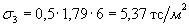 Момент от расчетной горизонтальной силы Q=0,5 тс равен 1,8 тс×м.