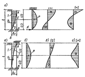 где eбf-жесткость поперечного сечения сваи, определяемая согласно главе СНиП по проектированию мостов и труб; lN-длина сжатия сваи. Длину сжатия lN, м, следует определять по формулам: при опирании набивных свай, свай-оболочек или свай-столбов на скалу и при опирании забивных свай на скалу, крупнообломочные грунты с песчаным заполнителем и глинистые грунты твердой консистенции при опирании на нескальный грунт забивных свай