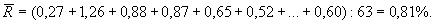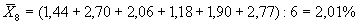 Текущее среднее по содержанию SO3 в цементе вычисляют по шести последним значениям результатов определений (n = 6). Текущее среднее, рассчитанное по формуле (E.1), равно: