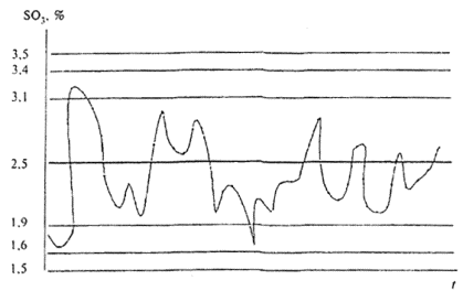 Предупреждающие границы и границы регулирования (верхние и нижние) вычисляют по формулам (Е.5) и (Е.6). Норматив по содержанию SO3 (а) берут равным 2,5 % согласно технологическому регламенту.