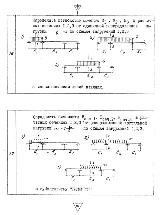 а - расстояние между осями балок в поперечном сечении пролетного строения. Положение расчетных сечений и обозначения пролетов - на рис. 1; рис. 2. 7.2. БЛОК-СХЕМА