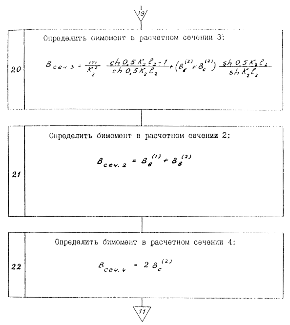 7. БЛОК-СХЕМА Субалгоритма «БИМОМЕНТ» определения бимоментов в расчетных сечениях неразрезного сталежелезобетонного двухбалочного пролетного строения с постоянным поперечным сечением в каждом пролете от равномерно распределенной крутильной нагрузки. 7.1. ОБОЗНАЧЕНИЯ n - число пролетов; j = 1, 2, 3; j = 1, 2, 3, 4 - номера расчетных сечений; N - число расчетных сечений; K1l1, K2l2, K1, K2, Jw 1, Jw 2 - изгибно-крутильные характеристики в пролетах l1, l2;