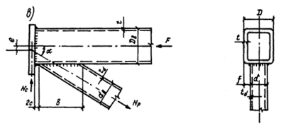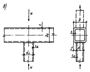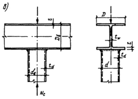 отношение площади полки к площади стенки: Af/Aw = 0,948; коэффициент влияния формы сечения h = 1,51; приведенный относительный эксцентриситет mef = mh = 2,40; гибкость стойки l = 71,5; условную гибкость По табл. 74 СНиП II-23-81* принимаем коэффициент снижения расчетных сопротивлений jе = 0,329. Из формулы (51) СНиП II-23-81* находим расчетное значение параметра нагрузки Pd: