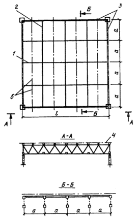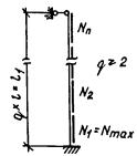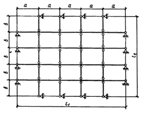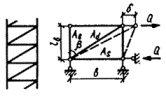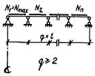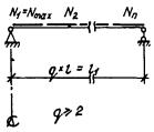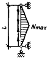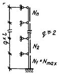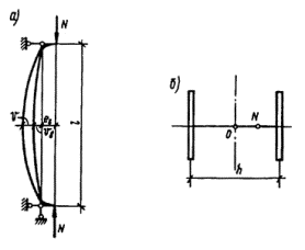 Рис. 4. Шарнирно опертый сквозной стержень Формулы для определения g1 и m при различных схемах соединительных элементов, полученные по правилам определения перемещений в рамных и стержневых системах [13], приведены в табл. 13. Для схем решеток типа 3-5 в соответствии с рис. 2 СНиП II-23-81* имеем