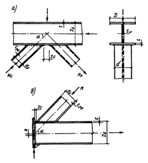 ЦНИИСК им. Кучеренко Госстроя СССР ПОСОБИЕ Москва 1989 ОРДЕНА ТРУДОВОГО КРАСНОГО ЗНАМЕНИ ЦЕНТРАЛЬНЫЙ НАУЧНО-ИССЛЕДОВАТЕЛЬСКИЙ И ПРОЕКТНО-ЭКСПЕРИМЕНТАЛЬНЫЙ ИНСТИТУТ КОМПЛЕКСНЫХ ПРОБЛЕМ СТРОИТЕЛЬНЫХ КОНСТРУКЦИЙ И СООРУЖЕНИЙ им. В. А. КУЧЕРЕНКО (ЦНИИСК им. КУЧЕРЕНКО) ГОССТРОЯ СССР ПОСОБИЕ Утверждено приказом ЦНИИСК им. Кучеренко Госстроя СССР от 15 августа 1985 г. № 243/л Москва Центральный институт типового проектирования 1989 Рекомендовано к изданию секцией металлических конструкций научно-технического совета ЦНИИСК им. Кучеренко Госстроя СССР. Пособие по проектированию стальных конструкций (к СНиП II-23-81* “Стальные конструкции” ЦНИИСК им. Кучеренко Госстроя СССР. - М.: ЦИТП Госстроя СССР, 1989. -148 с. Содержит разъяснения к СНиП II-23-81* “Стальные конструкции”. Приведены материалы по проектированию новых конструктивных форм, подбору сечений элементов, расчету технико-экономических показателей конструкций, а также по новым методам расчета стальных конструкций. Приведены примеры расчета и конструирования. Для инженерно-технических работников проектных организаций, а также для инженеров, научных работников, специализирующихся в области строительных металлических конструкций, и студентов строительных факультетов. Табл. 106, ил. 69. При пользовании Пособием следует учитывать утвержденные изменения строительных норм и правил и государственных стандартов, публикуемые в журнале “Бюллетень строительной техники”, “Сборнике изменений к строительным нормам и правилам” Госстроя СССР и информационном указателе “Государственные стандарты СССР” Госстандарте СССР. Содержание ПРЕДИСЛОВИЕПособие разработано к СНиП II-23-81* “Стальные конструкции”. Основополагающими документами при разработке Пособия наряду со СНиП II-23-81* явились СТ СЭВ 3972-83 “Надежность строительных конструкций и оснований. Конструкции стальные. Основные положения по расчету” и СТ СЭВ 384-87 “Надежность строительных конструкций и оснований. Основные положения по расчету”. Разд. 1-11 Пособия повторяют структуру СНиП II-23-81*. В них даются разъяснения к разделам и пунктам СНиП II-23-81*; такой же характер имеют разд. 12, 13 и частично разд. 21 и 22, остальные содержат материалы по проектированию новых конструктивных форм, подбору сечений элементов, определению технико-экономических показателей, новому подходу к расчету конструкций. В Пособии номера пунктов СНиП II-23-81* приведены в скобках. Пособие разработано ЦНИИСКом им. Кучеренко Госстроя СССР (кандидаты техн. наук Г.Е. Бельский - разд. 1, 4, пп. 3.1-33, 5.1-5.14, 5.16-5.20, 5.23, 5.24, 5.26, 5.31-5.37, 5.40, 5.41, 5.45, 6.1-6.4, В.Н. Потапов - разд. 2, 10, пп. 3.4-3.7, 5.46, 12.2; М.И. Егоров - пп. 2.1-2.7, 3.4-3.7, 12.2; Е.Р. Мацелинский - пп. 2.8-2.13, 3.12, 3.13, 11.2, 11.3; А.А. Фадеев - пп. 3.4-3.7, 5.46; В.М. Барышев - пп. 3.8-3.11, 11.1, 12.1; д-р техн. наук Б.М. Броуде - разд. 8, пп. 5.15, 5.21, 5.22, 5.25, 530, 5.38, 5.39, 5.42-5.44; 21.1-21.6; канд. техн. наук М.И. Гукова - пп. 6.5-6.15; д-р техн. наук В.М. Горпинченко, канд. техн. наук Е.М. Кондрахов - разд. 22, пп. 9.1-9.5; инж. Б.И. Беляев - разд. 13; кандидаты техн. наук Б.Н. Решетников - разд. 14, 18; Б.С Цетлин - разд. 18, пп. 15.9-15.17, 16.5-16.19, И.Л. Пименов - разд. 19; д-р техн. наук, проф. В.И. Трофимов - разд. 20, 24; инж. Ю.А. Чернов, кандидаты техн. наук А.М. Ларионов - разд. 20; Ю.Н. Симаков - пп. 21.7-21.12; д-р техн. наук Н.С. Москалев - разд. 23; кандидаты техн. наук П.Г. Еремеев - разд. 24; А.Я. Дривинг - прил. 1; Б.Н. Кузнецов - прил. 2) при участии ЦНИИпроектстальконструкции им. Н.П. 