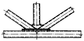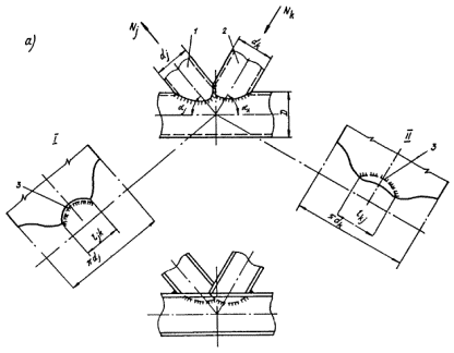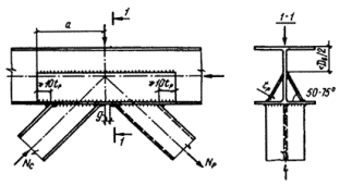 Значение коэффициента снижения прочности проката на растяжение в направлении толщины листа gth практически не зависит от марки стали и толщины листа в пределах до 60 мм и равно 0,72. При этом обеспеченность нормативного сопротивления на растяжение в направлении толщины gth Run на основании статистических данных принята 0,95. Неоднородность прочностных свойств проката по толщине существенно выше, чем в плоскости листа. С учетом этого коэффициент надежности по материалу при растяжении в направлении толщины листа принят gmth = 1,1 gm. Формула (7) предусматривает расчет на прочность по временному сопротивлению, т.е. предельным состоянием является разрушение. Для предотвращения разрушения в формулу (7) введен коэффициент надежности gu = 1,3. После подстановки числовых значений коэффициентов gth, gmth, gu в формулу (7) расчетное сопротивление Rth приводится к виду (6). При расчете проката по Rth коэффициент надежности gu, определяемый в соответствии с разд. 4* СНиП II-23-81*, учитывать не следует. 3.7. В изгибаемых элементах конструкций (типа пластин, плит, фланцев) малой высоты сопротивление проката переходу в упругопластическое состояние из-за наличия больших градиентов напряжений существенно превышает расчетные сопротивления Ry, приведенные в СНиП II-23-81*. В связи с этим в СНиП II-23-81* предусмотрена возможность учета повышенных значений сопротивления металла при определении высоты сечения (толщины) элементов конструкций типа опорных плит введением для них коэффициентов условий работы gс > 1 (см. п. 5.46). РАСЧЕТНЫЕ СОПРОТИВЛЕНИЯ СВАРНЫХ СОЕДИНЕНИЙ3.8 (3.4). Формулы для определения расчетных сопротивлений сварных соединений, приведенные в СНиП II-23-81*, предполагают следующие условия: подготовка материалов, сборка конструкций, сварка и контроль качества осуществляется в соответствии с требованиями [8] и других нормативных документов; сварочные материалы для стыковых соединений соответствуют прочности свариваемой стали и условиям эксплуатации конструкций и применяются в соответствии с табл. 55* СНиП II-23-81*; сварочные материалы для расчетных угловых швов применяются в соответствии с табл. 56 СНиП II-23-81* с учетом условий эксплуатации конструкций, указанных в табл. 55* СНиП II-23-81*. 3.9. Расчетные сопротивления стыковых соединений, выполняемых всеми видами дуговой сварки, принимаются равными расчетным сопротивлениям стального проката при условии соблюдения требований п. 13.4 СНиП II-23-81* о полном проваре соединяемых элементов, обеспечиваемом сварками: двусторонней, односторонней с подваркой корня шва, на подкладках, а также при физическом контроле качества швов. В случаях, когда в стыковых соединениях невозможно обеспечить полный провар элементов, рекомендуется принимать Rwy = 0,7. 3.10. Несущая способность сварных соединений с угловыми швами зависит от ориентации шва относительно направления усилия, действующего на соединение. Однако расчетные сопротивления соединений с угловыми швами в СНиП II-23-81* упрощенно приняты для наименее благоприятной ориентации - флангового шва и независимыми от угла между продольной осью шва и направлением -силы, действующей на него. 3.11. Предельным состоянием для сварных соединений с угловыми швами является разрушение. В связи с этим их расчетные сопротивления в СНиП II-23-81* установлены по временному сопротивлению металла: для металла шва в зависимости о