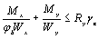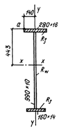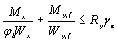При приложении нагрузки, действующей в плоскости, параллельной плоскости х-х, только к одному (верхнему) поясу балки во втором члене формулы (40) следует принимать изгибающий момент My,f и момент сопротивления Wy,f соответственно для этого (верхнего) пояса балки. В этом случае расчет следует выполнять по формуле