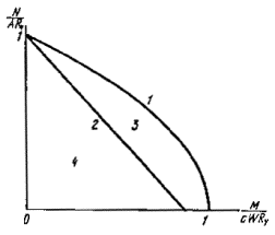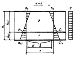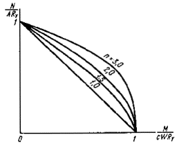где знак “плюс” перед радикалом относится к случаю с1 < 0, а знак “минус” - к случаю с1 > 0. Коэффициенты с1 и с2 вычисляются для поперечного сечения, содержащего наиболее напряженное волокно, по формулам: