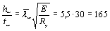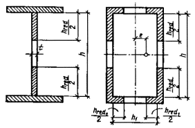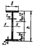 В практических расчетах по формуле (26) учитывается частичное стеснение депланации опорных сечений введением коэффициента 2 в первый член числителя формулы для Nw [см. формулу (21)], чем приближенно оцениваются фактические условия в узлах стержневых конструкций. В окончательном виде с использованием безразмерных величия эта формула приведена в СНиП II-23-81* под номером (12). Формула (11) СНиП II-23-81* основана на предположении, что соотношение критических сил при работе элемента за пределом упругости принято таким же, как при работе его в пределах упругости. 5.10 (5.5). Пример расчета центрально-сжатого тонкостенного стержня П-образного сечения (см. рис. 1, а СНиП II-23-81*) с параметрами b = b/h = 0,5 и h/t = 15. Площадь А и моменты инерции сечения Ix и Iу равны: