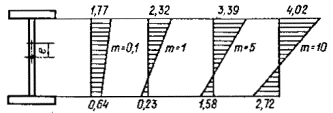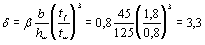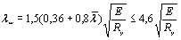 В формуле (36) предел пропорциональности принят равным 0,85sy, а отношение s/sу = 1 при scr/sy = 2,42, что эквивалентно отношению sy/scr = Еr/Е = 0,412 (где Еr - приведенный модуль). Для балок двутаврового
