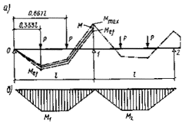 Эпюра остаточных моментов Мri в ригеле постоянна (рис. 2, в) и равна Мri = Mr. Максимальное значение поперечной силы Qi имеет место у правой опоры ригеля в расчетном сечении i = 7 и равно