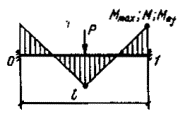 Усилия в элементе от нормативных значений нагрузок: снеговой - 8,0 т; от веса