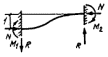 г) Определение параметра нагрузки краевой текучести материала Ру Согласно п. 5 настоящего приложения основной системой заданной свободной рамы будет соответствующая несвободная рама с фиктивной опорой от горизонтального смещения в уровне ригеля, которая полностью воспринимает горизонтальную нагрузку Т и не воспринимает вертикальную нагрузку q. Поэтому эпюра изгибающих моментов в основной системе рамы будет равна Mo = Мq (см. рис. 2, а настоящего приложения), а эпюра изгибающих моментов от лишней неизвестной z (горизонтального смещения рамы) будет равна Мz = Мr (см. рис. 2, б настоящего приложения). Наиболее напряженным поперечным сечением, в котором возникает первый пластический шарнир, является правое опорное сечение ригеля. По формулам (10) и (9) настоящего приложения находим: