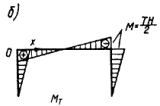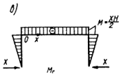 Рис. 2. Эпюры изгибающих моментов а - от вертикальной нагрузки; б - от горизонтальной нагрузки Т; в -от лишней неизвестной Х Коэффициенты расчетной длины m стойки определим по формуле (70, б) СНиП II-23-81* при р = п= 0,624: