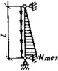 д) Определение параметра нагрузки пластической усталости Pa Наибольший размах напряжений Ds имеет место в крайнем внутреннем волокне концевого сечения правой стойки. В этом волокне наибольшее сжимающее напряжение sтах имеет место при сочетании нагрузок q(P), V(P) и Т(Р), а наименьшее сжимающее (или наибольшее растягивающее) напряжение smin - при сочетании нагрузок q(0,5P), V(0,5P) и Т(-Р). По формулам пп. 5 и 6 вычисляем: