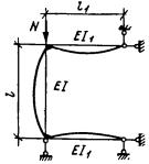 геометрической длине и радиусу инерции При достаточно большом числе панелей (свыше 8) из решения задачи устойчивости шарнирно опертого идеально упругого сквозного стержня (рис. 4) коэффициент приведенной длины получен в следующем виде [13]: