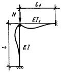 В формулах (5) - (8): Py - параметр нагрузки краевой текучести, при котором впервые появляется текучесть материала, определяемый согласно п. 5 настоящего приложения; b - коэффициент, учитывающий соответствие форм деформирования и потери устойчивости рамы, определяемый согласно п. 7 настоящего приложения. 3. В зависимости от числа опасных сочетаний и вида нагрузок расчет рамы выполняется одним из следующих способов: при большом числе опасных сочетаний нагрузок, когда расчет рамы на каждое сочетание поочередно требует больших затрат машинного времени, параметры Ру, Рs и b определяются из расчета рамы на приспособляемость, а параметр Pe - из расчета на устойчивость при максимально возможной вертикальной нагрузке на раму согласно п. 4 настоящего приложения; при небольшом числе опасных сочетаний нагрузок расчет рамы выполняется на каждое сочетание поочередно, а в качестве параметра предельной нагрузки Рu принимается наименьшее из полученных значений. 4. Параметр первой критической нагрузки Pe определяется из расчета на устойчивость упругой рамы. Рекомендуется использовать метод перемещений, для которого единичные реакции сжатых стержней принимаются согласно следующей таблице и табулированы в [19]: 5. Параметр нагрузки краевой текучести Ру принимается равным