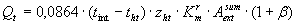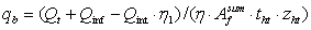 где Qt - трансмиссионные теплопередачи, Вт·ч; Qinf - теплопередачи на нагревание инфильтрующего воздуха, Вт·ч; Qint - бытовые теплопоступления, Вт·ч; η1 - коэффициент учитывающий степень реагирования системы отопления на изменение внутренних теплопоступлений; η - к. п. д. системы отопления;