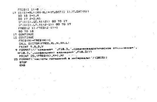 Приложение 1Состав исходных данных для программы расчета1-я перфокарта содержит шесть целых чисел, на каждое из которых отводится по три позиции: количество реализаций случайных величин (200); произвольное целое число; количество интервалов гистограммы(25); ширина столбца гистограммы (в строках АЦПУ-4); количество сечений, в