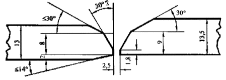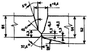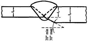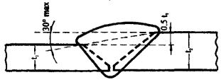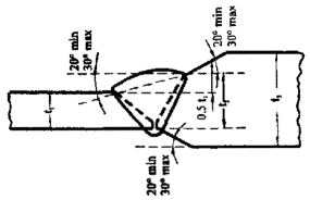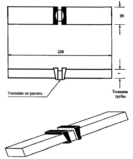 г Обработка с наружной стороны толщины t3 до t2 £ 1,5t1 Рис. 5. Регламентируемые варианты обработки торцов стыкуемых разнотолщинных элементов t1 - толщина стенки более тонкостенного элемента; t2 - толщина свариваемого торца более толстостенного элемента; t3 - толщина стенки более толстостенного элемента Разнотолщинность свариваемых торцов (см. п. 1.3.10) (t1/t2) после механической обработки не должна превышать 1,5. Типовые варианты обработки соединяемых элементов с разнотолщинностью 1,5 и менее приведены на рис. 5 а, б, в, г. Разнотолщинные соединения свариваемых торцов соединительных деталей, арматуры и труб диаметром 530 - 1420 мм должны выполняться с внутренней подваркой. При отсутствии технической возможности подварки корневого слоя внутри трубопровода соединение следует выполнять путем предварительной сварки соединительной детали и патрубка с последующей подваркой корня шва. Контроль разнотолщинных сварных соединений должен осуществляться радиографическим (100 %) и ультразвуковым (100 %) методами, при этом к кольцевым сварным соединениям должны быть предъявлены требования по дефектоскопии, как к стыкам с внутренней подваркой. 7.3. Сборку стыков захлестов, гарантийных и температурных (замыкающих) стыков следует производить непосредственным соединением труб или вваркой катушки (патрубка). Сварка гарантийного стыка оформляется актом. При линейном строительстве в случае применения катушки она должна быть изготовлена из трубы той же толщины, того же диаметра и того же класса прочности, что и соединяемые трубы. При монтаже захлестов запрещается натягивать трубы (плети), изгибать их силовыми механизмами или нагревать за пределами зоны сварного стыка. Сборка разнотолщинных труб при монтаже захлестов не допускается. Контроль стыков захлестов выполнять в объеме 100 % радиографией и 100 % ультразвуком, как указано в п. 7.2. для разнотолщинных стыков. 7.4. Заварка технологических отверстий осуществляется путем вварки заплат. Технология вварки заплат аттестуется в установленном СП порядке. 7.5. Приварка катодных выводов дуговой сваркой разрешается только к сварным швам. Приварка любых конструктивных элементов к телу трубы разрешается только в случае, когда предусмотрена послесварочная термообработка. 7.6. Ремонту сваркой могут быть подвержены только те сварные соединения, в которых суммарная длина участков с недопустимыми дефектами не превышает 1/6 периметра стыка. Ремонт трещин, кроме кратерных, не допускается. Повторный ремонт одного и того же дефектного участка не допускается. 7.7. Длина ремонтируемого участка должна превышать длину дефекта не менее чем на 30 мм в каждую сторону от дефекта. 7.8. Ремонт должен выполняться с обязательным равномерным предварительным подогревом, регламентируемым технологической инструкцией и технологической картой на ремонтные работы. 7.9. Технология ремонта сваркой регламентируется технологической инструкцией и картой. Ремонт швов, сваренных иными способами, чем ручная дуговая сварка покрытыми электродами (например, механизированной сваркой под флюсом), выполняется только электродами с основным видом покрытия. 7.10. На все виды специальных сварочных работ должны быть составлены акты, которые хранятся в монтажной организации и передаются Заказчику при сдаче объекта. 8. Послесварочная термообработка сварных соедине