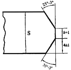 4.2.4. В качестве защитного газа при сварке внутреннего корневого и облицовочного слоев шва следует использовать смесь из 75 % аргона и 25 % углекислого газа, при сварке остальных слоев - углекислый газ. 4.2.5. Используемые для сварки газы по чистоте должны удовлетворять следующим рекомендациям фирмы CRC-Evans: • аргон газообразный чистотой не менее 99,995 %; • углекислый газ чистотой не менее 99,5 %. По рекомендациям ВНИИСТа при сварке могут также использоваться защитные газы, поставляемые российскими производителями: • аргон газообразный сорта А по ГОСТ 10157-79 чистотой не менее 99,99 %; • углекислый газ сварочный сорта 1 по ГОСТ 8050-85 чистотой не менее 99,5 %. 4.2.6. Следует использовать при сварке защитные газовые смеси заводского приготовления, поставляемые в баллонах. Допускается приготовление защитных газовых смесей непосредственно в полевых условиях с помощью смесителей газа, устанавливаемых в газовых рампах агрегатов питания. 4.3. Состав основных технологических операций 4.3.1. Раскладка труб. Трубы или трубные секции укладывают на бровке траншеи на инвентарных лежках под углом к оси траншеи таким образом, чтобы к торцам труб был свободный доступ. Расстояние от грунта до нижней образующей трубы для труб диаметром 1420 мм должно быть не менее 300 мм. В процессе раскладки необходимо провести осмотр труб, исправить или вырезать участки труб с поверхностными дефектами в соответствии с требованиями раздела 5 настоящего СП. 4.3.2. Подготовка и обработка торцов труб. 4.3.2.1. Обработку торцов труб с целью уменьшения площади поперечного сечения разделки производят кромкострогальными станками. 4.3.2.2. Для соединения труб с одинаковой толщиной стенки обработка должна быть произведена в соответствии со схемой, приведенной на рис. 4.3.1a. а) б) Рис. 4.3.1. Разделка кромок труб диаметром 1420 мм для двухсторонней автоматической сварки в защитных газах на оборудовании CRC-Evans AW а) для труб с одинаковой толщиной стенки; б) для разнотолщинных труб 4.3.2.3. При соединении разнотолщинных труб разделку более толстостенной трубы следует производить в соответствии со схемой, приведенной на рис. 4.3.16. 4.3.2.4. Прилегающие к торцам внутреннюю и наружную поверхности труб зачищают до чистого металла на ширину не менее 10 мм. 4.3.2.5. Следует зашлифовать «заподлицо» с поверхностью трубы наружное усиление продольного шва на длине от торца не менее 10 мм. 4.3.2.6. Перед обработкой торца после газовой резки следует зашлифовать «заподлицо» с внутренней поверхностью трубы внутреннее усиление продольного шва на длину не менее 50 мм от торца. 4.3.3. Установка на концах труб направляющих поясов для наружных автоматов. 4.3.3.1. Установку направляющих поясов производят с помощью специальных шаблонов. Направляющие пояса следует устанавливать на торец трубы, обращенный в сторону движения монтажной колонны. 4.3.4. Предварительный подогрев концов труб. 4.3.4.1. Подогрев стыкуемых концов труб производят с помощью установки индукционного подогрева. Температура стыка в момент начала сварки внутреннего корневого шва должна быть не менее 50 °С. 4.3.5. Сборка стыка. 4.3.5.1. Сборку стыка производят с помощью специального внутреннего центратора. Центратор следует установить «на стык», отрегулировать положение сварочных головок относительно плоскости стыка и настроить параметры режима сварки. 4.3.5.2. Стык следует собирать без зазора. Доп