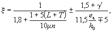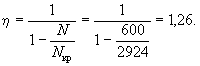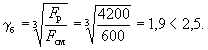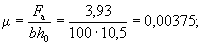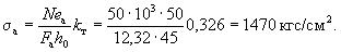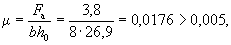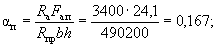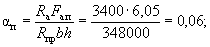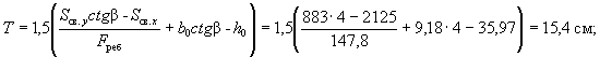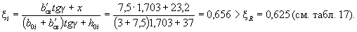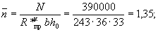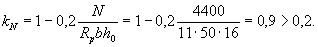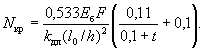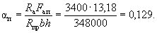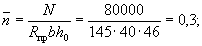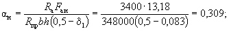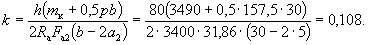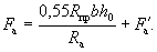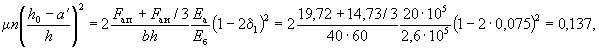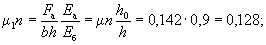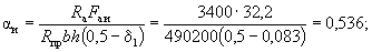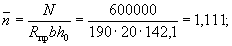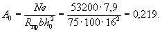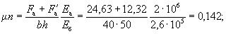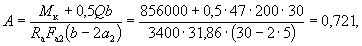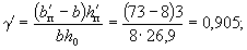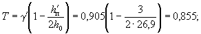 По вычисленным значениям γ' = 0,071; μn = 0,064 и eа/h0 = 50/45 = 1,11 находим из табл. 28 значение коэффициента kт: kт = 0,326;