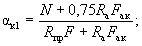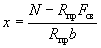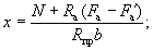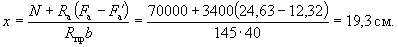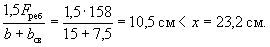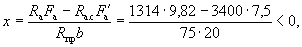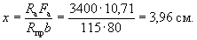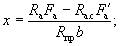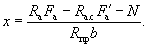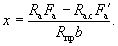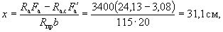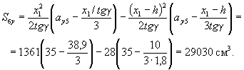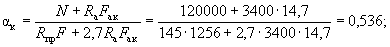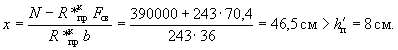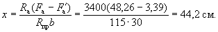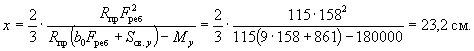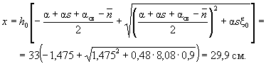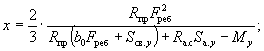 Поскольку все стержни одинакового диаметра, новые значения Fб, b0 и h0 будут равны: Fб = 225,5(2 + 0,911)/3 = 215,3 см2; b0 = (2·12 + 0,911·3)/(2 + 0,911) = 9,18 см; h0 = 40 - 3 - 1·3/(2 + 0,911) = 35,97 см. Аналогично определяем значения Sсв.у, Sсв.х, Fреб: Sсв.у = 67,5(9,18 + 7,5/2) = 883 см3; Sсв.х = 76,5(35,97 - 9/2) = 2125 см3; Fреб = 215,3 - 67,5 = 147,8 см2. Значение x определяем по формуле (39):