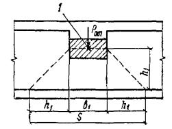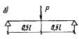 Принимаем это расстояние равным 34 см. Тогда поперечная сила в сечении, проходящем через нижний конец второго отгиба, равна (см. рис. 23): Q3 = 33(290 - 5 - 52 - 34 - 52)/290 = 16,6 тс. Так как Q = 16,6 тс < Qх.б = 23,6 тс, то, согласно п. 3.40, отгибов больше не требуется (при сохранении того же шага хомутов на участке за вторым отгибом). Пример 16. Дано: сплошная плита перекрытия пролетом l = 0,5 м и толщиной h = 5 см, нагруженная равномерно распределенной нагрузкой p = 7,5 тс/м2; поперечная арматура отсутствует; a = 1,5 см; бетон марки М 200 (Rр = 6,5 кгс/см2 с учетом mб1 = 0,85). Требуется проверить прочность плиты на действие поперечной силы. Расчет. h0 = h - a = 5 - 1,5 = 3,5 см. Расчет ведем для полосы плиты шириной b = 100 см. Поперечная сила на опоре равна Qмакс = pl/2 = 7,5·0,5/2 = 1,875 тс. Проверяем условие (47) п. 3.31, принимая k1 = 0,75: k1Rрbh0 = 0,75·6,5·100·3,5 = 1707 кгс < Qмакс = 1875 кгс. Следовательно, расчет прочности необходим. Прочность проверяем согласно п. 3.42, принимая k2 = 2,5; k3 = 1,5: k2Rрbh0= 2,5·6,5·100·3,5 = 5690 кгс > Qмакс, т.е. условие (64) выполняется. Проверим условие (66). Для этого вычисляем p1 = p/2 = 7,5/2 = 3,75 тс/м = 37,5 кгс/см: