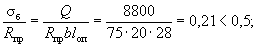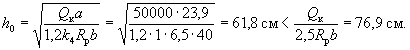 Условия u < h/2 и u < 15 см п. 5.73 также удовлетворяются. Прочность наклонного сечения проверяем из условия (52), п. 3.35.