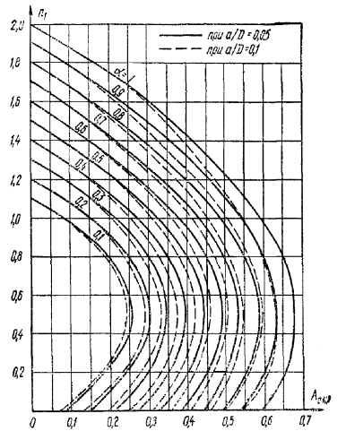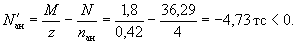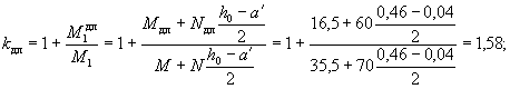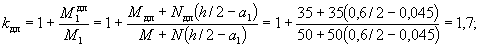 = 50/2 - 5 + еа/h0 = 68/45 = 1,51. При γ' = 0,071, μn = 0,064 и eа/h0 = 1,51; коэффициент kт, согласно табл. 28, равен 0,52: