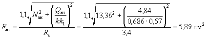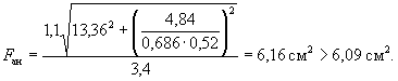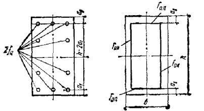 Следовательно, расчет продолжаем по формулам косого изгиба. Проверяем условие (41) для наименее растянутого стержня. Из рис. 10 имеем b0i = 3 см; h0i = 40 - 3 = 37 см: