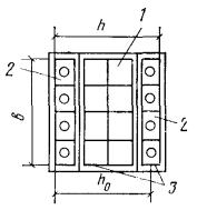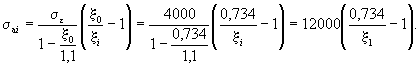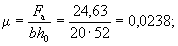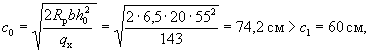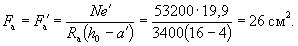 Условие (41) не соблюдается и расчет повторяем, заменяя в формуле (37) значение Rа для наименее растянутого стержня на напряжение σа, определенное по формуле (42), и корректируя значения h0 и b0. Из табл. 17 имеем ξ0 = 0,758 и s = 4,73: